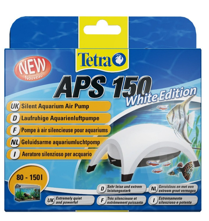 پمپ هوا تترا Aps 150 ,سایلنت و بی صدا، حاوی تک شیر تنظیم خروجی هوا، تک لول، پر قدرت ،مناسب برای هوادهی آکواریوم های ۸۰ تا ۱۵۰ لیتر