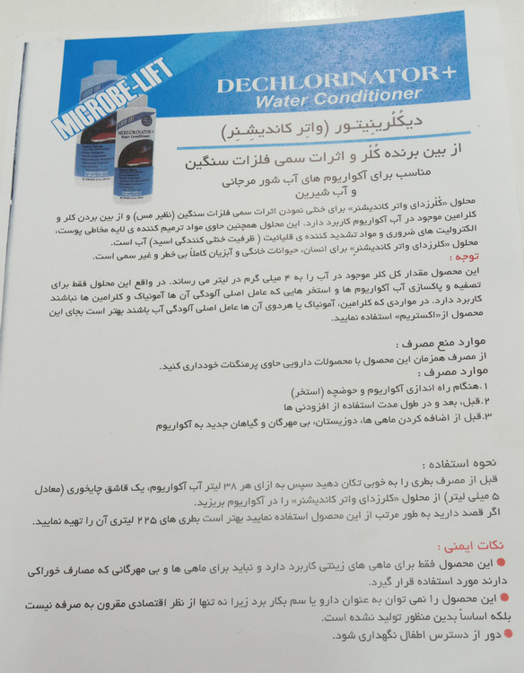 محلول ضد کلر ، دی کلرینتور واتر کاندیشنر ۲۳۶ میل،آمریکایی _میکروب لیفت ( از بین برنده ی کلر و اثرات سمی فلزات سنگین)آکواریوم آرام