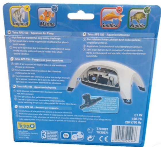پمپ هوا تترا مدل Aps 300 ,سایلنت و بی صدا، تک لول، مناسب برای آکواریومهای ۱۲۰ تا ۳۰۰ لیتر، قدرت بسیار بالا، دو خروجی، کیفیت ساخت بسیار بالا