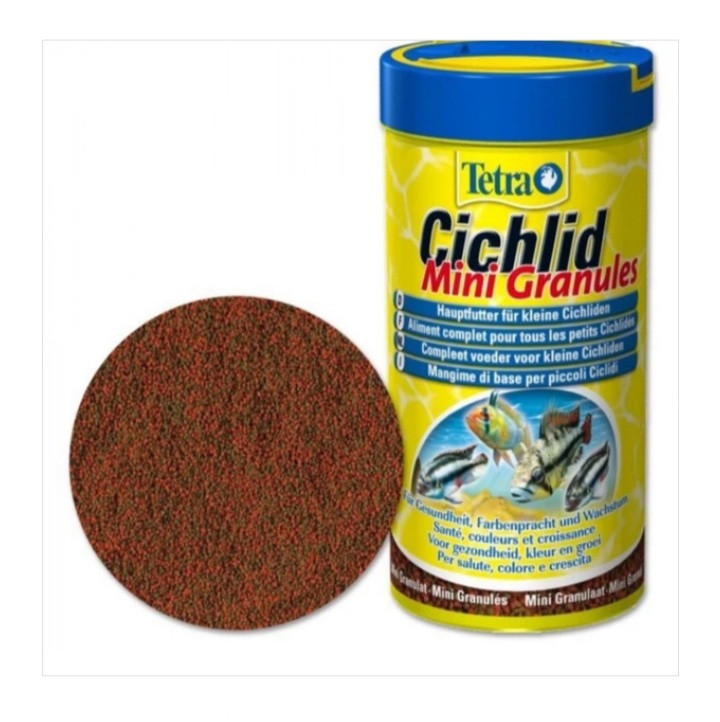 غذایی بسیار مناسب با فرمول ساخت بسیار بالا جهت تغذیه ی انواع ماهیهای سیچیلاید کوچک ، بسیار مغذی ، گرانولها در دو رنگ متفاوت، حاوی: غلات، عصاره ی پروتئینهای گیاهی،مخمر،ماهی،انواع سخت پوستان، کلیه ی مواد معدنی، انواع جلبکها و انواع ویتامینها و آمینواسیدها، حاوی طیف وسیعی از رنگدانه های طبیعی گه باعث تقویت رنگ ماهیها میشود، درب این محصول دارای کلیک باز و بسته شدن میباشد.