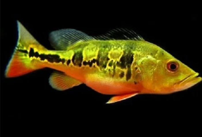 ( هزینه ی ارسال موجود زنده به شهرستان شامل: هزینه ی اسنپ تا ترمینال + هزینه ی بسته بندی + هزینه ی ارسال با اتوبوس و یا سواری میباشد. )ماهی جذاب پیکاک باس ساکن رودخانه ی ریونگرو برزیل است. این ماهی دارای بدنی بلند و کشیده با باله پشتی ضخیمی است. این ماهی دهانی بزرگ دارد که آرواره ی پایینی جلوتر از آرواره ی بالایی قرار دارد، این ماهی دارای یک نقطه ی بزرگ در وسط دم میباشد، آکواریوم مناسب نگهداری به حجم ۱۰۰ تا ۳۰۰ لیتر بسته به سایز ماهی متغیر است، آکواریوم صخره ای برای پنهان شدن و تخته سنگهای تخت برای تخمگذاری میباشد. آکواریوم دارای گیاهان طبیعی هم به کاهش استرس این ماهی کمک میکند ، دمای مناسب ۲۴ الی ۲۸ درجه سانتی گراد. تخم ریزی این ماهی در آکواریوم بسیار سخت است و نیاز به تجربه ی خیلی بالایی دارد . این ماهی در قسمت کم عمق تخمگذاری میکند. تغذیه: با انواع ماهیهای زنده ، کرم خاکی ، دل گوساله، میگو تازه و غذاهای خشک با کیفیت شرکت تترای آلمان و شرکت نیولایف اسپکتروم آمریکا بهترین گزینه هاست.