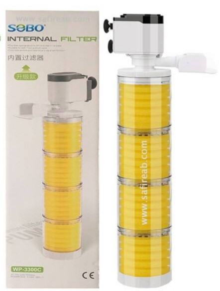 فیلتر تصفیه داخل آبی بسیار پرقدرت حاوی ۴ مخزن اسفنج دار که به سرعت عملیات تصفیه ی آب را انجام میدهد و ذرات معلق و فضولات ماهیها را جمع آوری میکند