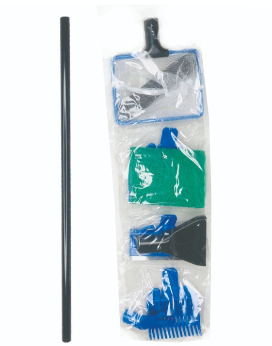 ست نظافت آکواریوم ۵ کاره جینگی jy_5x با کیفیت مناسب و قیمت مناسب بصرفه میباشد. حاوی پد نظافت جلبکهای نرم قهوه ای و سبز روی شیشه، دارای شن کش برای منظم کردن و شکل دادن به شنهای کف آکواریوم بدون دخالت دست، دارای تیغه مخصوص برای از بین بردن جلبکهای سخت روی شیشه، دارای دسته پلاستیکی، شامل تور ماهیگیری، چنگال کاشت گیاه