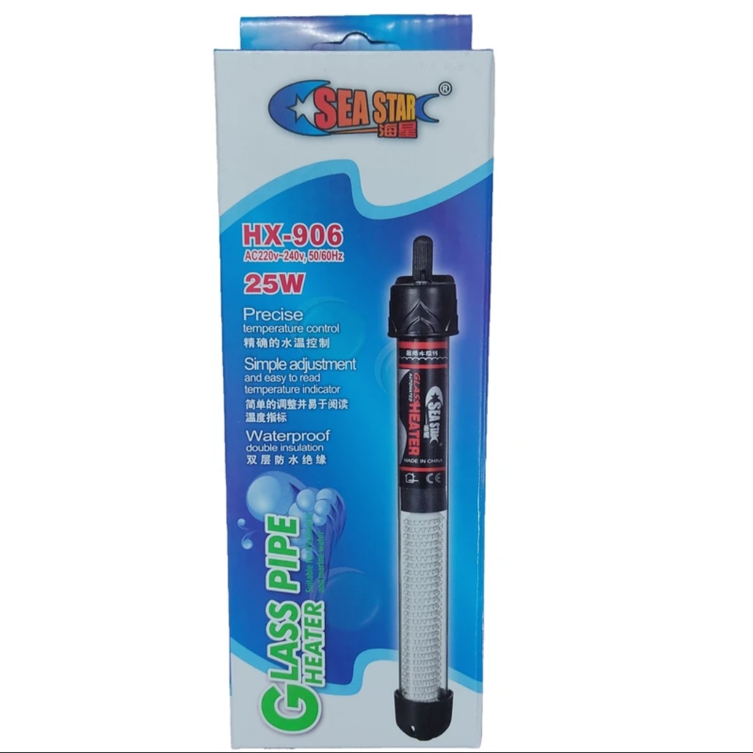 بخاری آکواریوم سی استار 25 وات یدک دار HX-906 ، یکی از اصلی ترین لوازم آکواریوم بخاری آکواریوم است که باید به آن توجه خاص شود چون اصولا آبزیان موجوداتی خونسرد هستند و دمای بدن آنها با دمای محیط یکسان است. اکثر ماهیان زینتی در دمای ۲۴ تا ۲۸ درجه سانتیگراد بهترین رشد و عملکرد را دارند و دمای مطلوب آنها این رنج دمایی است به همین دلیل بخاری یکی از مهمترین وسایل در آکواریوم است که به کمک آن باید از نوسان دمای آب جلوگیری شود.