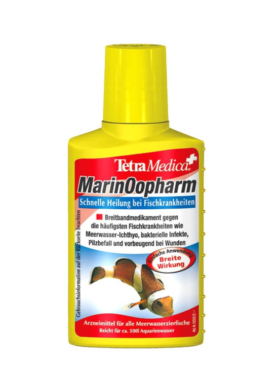 درمان باید ۲ هفته قبل از درمان بعدی انجام شود. برای درمانهای مکرر، هر ماده فعال باقی مانده باید قبل از اضافه کردن مجدد محصول با استفاده از کربن فعال فیلتر شود. در مورد عفونتهای میکسوباکتری، توصیه میکنیم دوره درمان را به ۴-۵ هفته افزایش دهید، یعنی ۳-۴ درمان در آکواریوم مستقر و ۲ درمان در آکواریوم قرنطینه. پس از درمان، مواد فعال را میتوان با فیلتر کردن با کربن فعال به مدت ۱-۲ روز به طور کامل از آکواریوم حذف کرد. بنابراین دیگر نیازی به تعویض کامل آب نیست. نحوه عملکرد Tetra Medica MarinOopharm بر اساس ترکیبی همافزایی از مواد بسیار فعال است که به طور قابل اعتمادی عوامل بیماریزا را از بین میبرد و آب را ضدعفونی میکند. درمان باید در یک آکواریوم کاملاً مجهز انجام شود تا از عفونت حیوانات سالم جلوگیری شود.