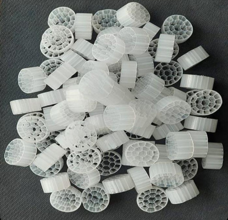 این محیط باید به اندازه ی کافی زبر باشد که باکتری ها بتوانند به آن بچسبند. بیو بال ها از جنس پلاستیک ABS می باشند و به دلیل داشتن شکل کروی وقتی در کنار هم قرار میگیرند بین آن ها فضای خالی ایجاد می شود که باعث می شود آب در میان این فرورفتگی ها و فضاهای خالی بیشتر جریان داشته باشد و جریال آب را نا منظم می کنند که همین امر کمک شایانی به هوا رسانی به باکتری ها می کند ، در نتیجه هر چه حجم فضاهای خالی میان بیو بال ها بیشتر باشد برای رشد باکتری ها مناسب تر است.