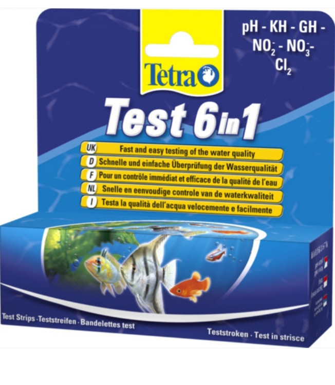 آزمایش کیفیت آب به وسیله تترا تست ۶ در ۱. حاوی تست ph, kh, Gh,No2,No3,Cl2 . مخصوص برای انواع آکواریومهای آب شیرین و پلنت( گیاهی)